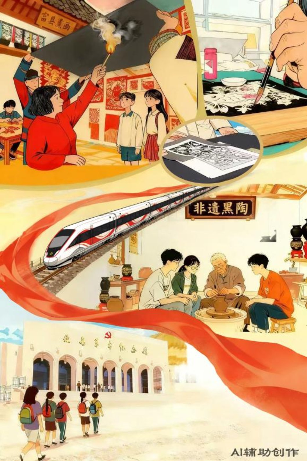 文旅融合的浪潮,为富县非遗的传承注入着澎湃动能。即将开通运营的西延高铁,也将促进沿线地区文旅深度融合,为非遗的跨区域传播按下“加速键”。西延高铁开通运营后,西安到延安约1小时可达。届时,西安的亲子家庭可以在周末坐着高铁直奔富县,在非遗传习所一同体验陶土塑形、烟火熏画的乐趣;青少年研学团队能更便捷地深入陕北腹地,让古老而厚重的非遗技艺成为鲜活的“课外教材”,滋养他们的文化自信。